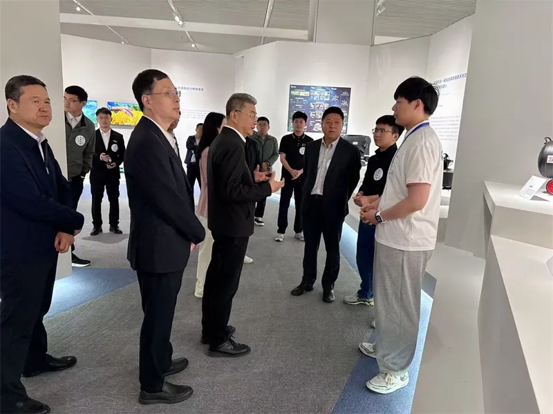 代佳骏在展览现场向教育部吴岩副部长汇报交流