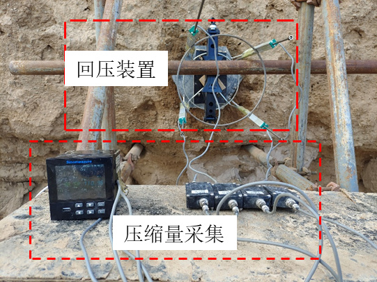 二是电渗注浆加固技术方法。方法的原理是以电力作为载体,带动加固液在土体内渗透,将电极和注浆管以一定间距平行布置在遗址表面病害发育区,通过对参数的调整,实现对加固深度和广度的精准控制,将24小时的注浆时间缩短为8小时,之后再使用冲击回压装置对电渗后的遗址进行加固,回压装置的加载面由多个加载单元组成,能自适应墙体表面的起伏。