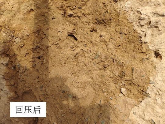 三是采用新型修复材料。关于修补表层风化电渗注浆方法中使用到的SH加固浆液是一种有机高分子材料,这种材料安全无毒,固土效果良好,与土体兼容性良好,可任意浓度稀释配置,易于操作。关于修复裂隙方法中使用到的新型修补加固浆液,是一种取材与遗址本体同样传统的新型微膨胀浆液,团队通过自研程序搭配上前方所提供的大量数据,获得所需强度的最优材料配比方案,调配出稠度适宜灌注,具有抵抗干缩性能,可微膨胀增强抗剪强度与粘聚力的新型浆液。